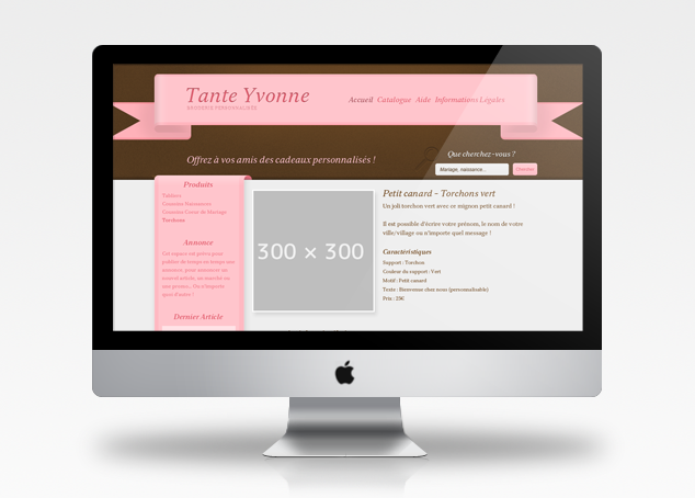 Here is a small catalog for an embroidery shop showcasing some of their work online. The owner wanted an old-style feminine look for their website.